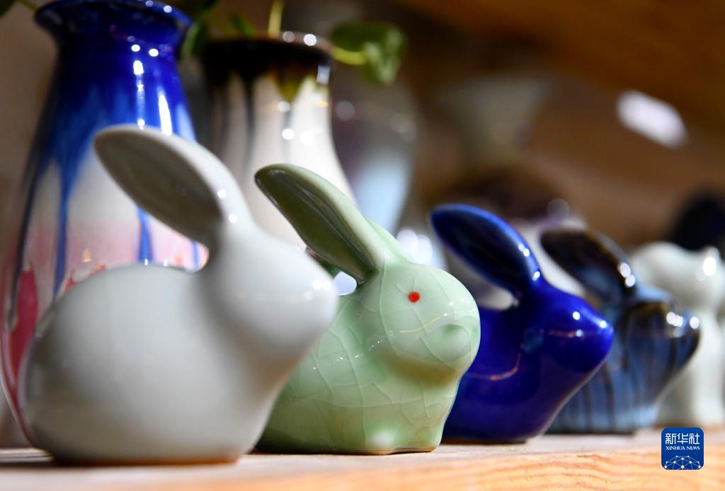 這是1月23日在河南省禹州市神垕鎮一家文創(chuàng )店拍攝的鈞瓷生肖兔。