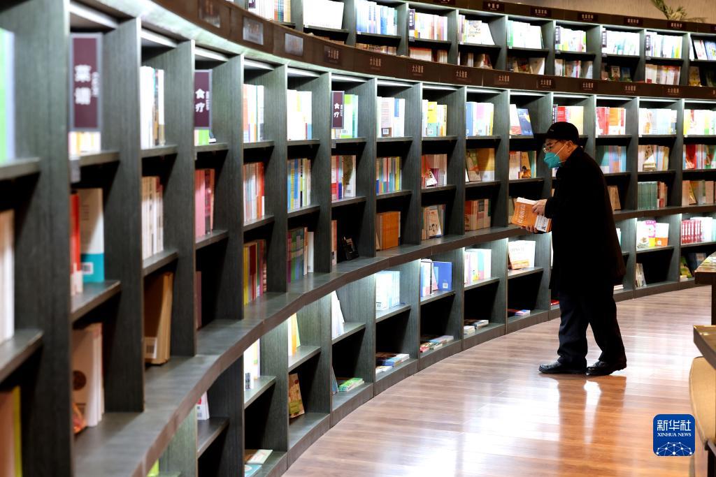 1月23日,一名讀者在山東省棗莊市魯南書(shū)城選購書(shū)籍。