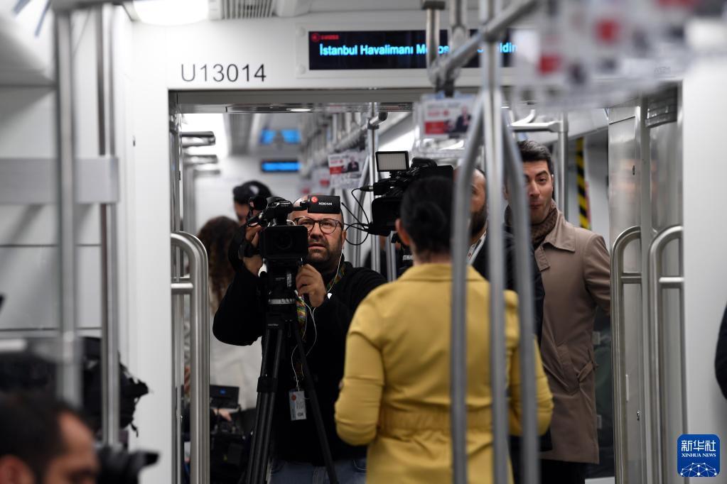 1月22日,在土耳其伊斯坦布爾,媒體記者在伊斯坦布爾新機場(chǎng)線(xiàn)地鐵列車(chē)內采訪(fǎng)。