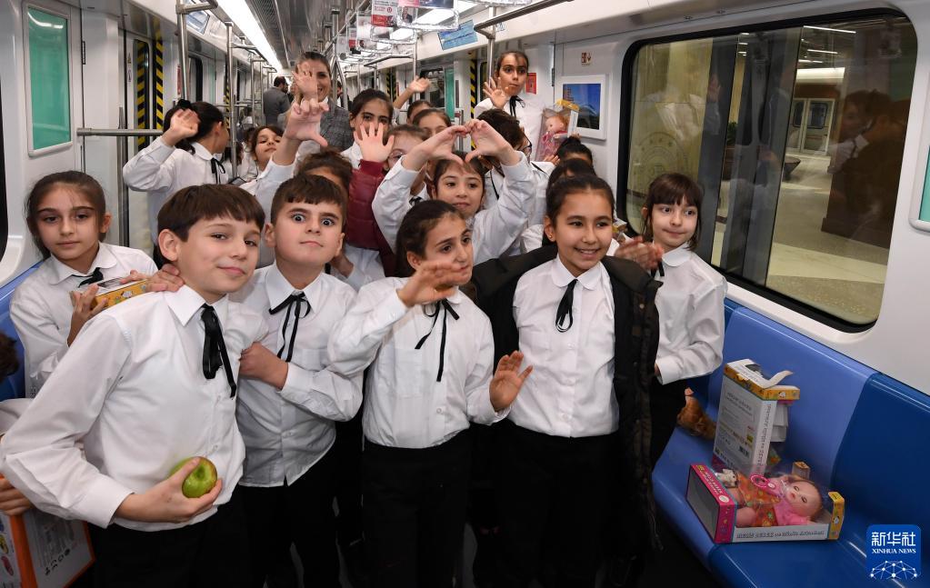 1月22日,學(xué)生登上伊斯坦布爾新機場(chǎng)線(xiàn)地鐵列車(chē)體驗。