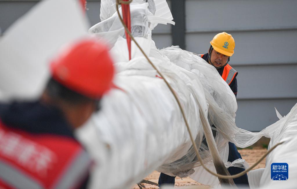 1月23日,工人在位于海南省文昌市的海南商業(yè)航天發(fā)射場(chǎng)1號工位轉運設備構件。