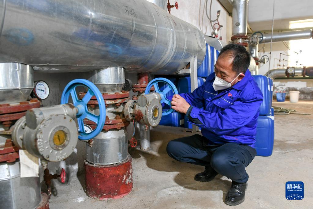 1月23日,在內蒙古呼和浩特市城發(fā)供熱有限責任公司金橋分公司運營(yíng)四所,工作人員檢查供熱管道閥門(mén)。