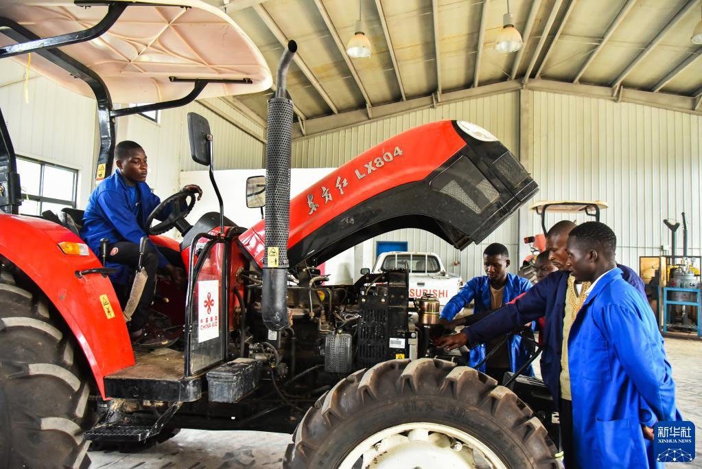 1月12日,在喀麥隆亞巴西,學(xué)生在農業(yè)職業(yè)技術(shù)中學(xué)上拖拉機實(shí)踐課。
