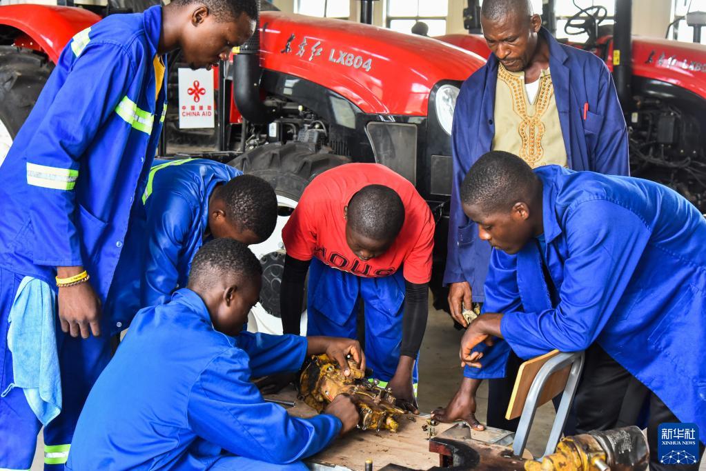1月12日,在喀麥隆亞巴西,學(xué)生在農業(yè)職業(yè)技術(shù)中學(xué)上拖拉機實(shí)踐課。