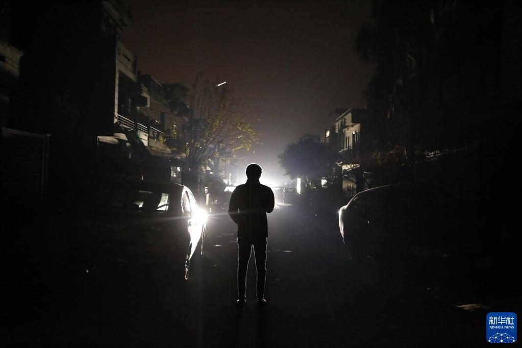 1月23日,一名男子在大規模停電期間走在巴基斯坦伊斯蘭堡街頭。