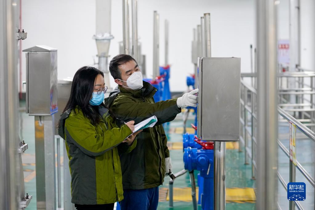 1月24日,重慶市悅來(lái)污水處理廠(chǎng)的值班人員對污水處理設備和運行情況進(jìn)行日常巡查。