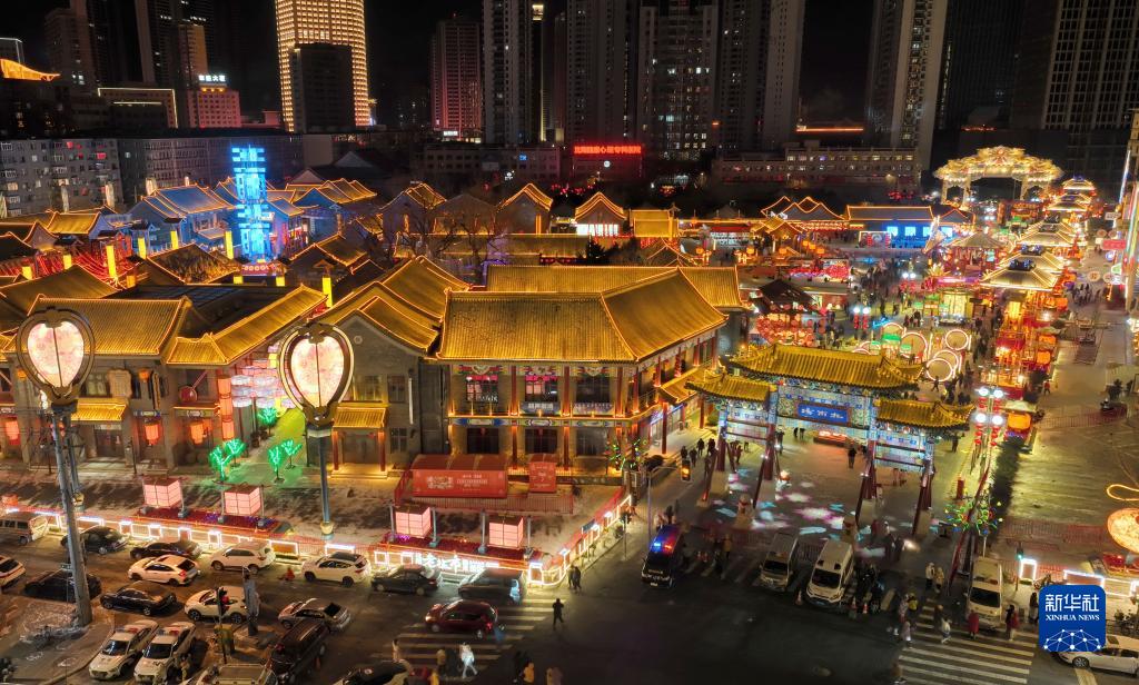 1月23日拍攝的沈陽(yáng)新春皇寺廟會(huì )(無(wú)人機照片)。