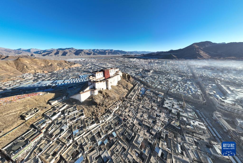 1月24日拍攝的日喀則市的清晨(無(wú)人機照片)。
