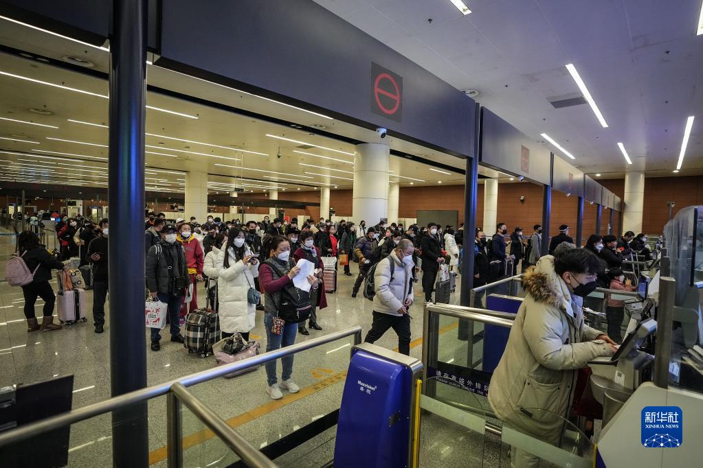 1月24日,旅客在沈陽(yáng)桃仙國際機場(chǎng)通關(guān)。