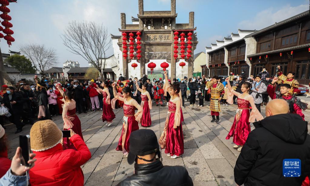 當日,浙江省杭州建德市梅城鎮嚴州古城開(kāi)啟“宋福杭州年”新春系列文旅活動(dòng),包括古城開(kāi)城儀式、“福祿壽三星”送禮、民俗演藝等豐富多彩的活動(dòng),展示獨具魅力的嚴州文化,讓游客感受古城宋韻。