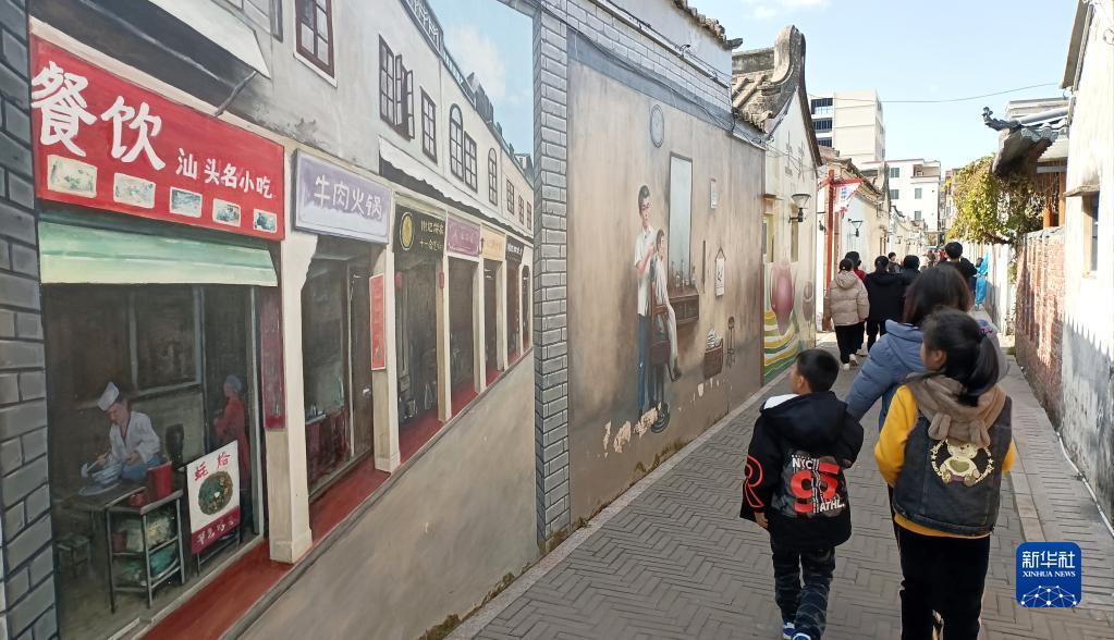 1月24日,游客在廣東汕頭龍湖區十一合村觀(guān)光游覽。