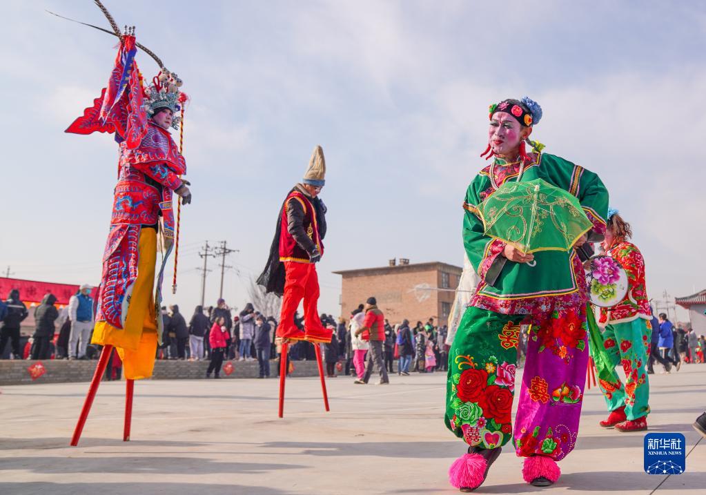 1月25日,民間藝人在河北省張家口市蔚縣蔚州古城進(jìn)行社火表演。