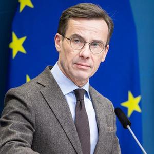 1月24日,瑞典首相克里斯特松在斯德哥爾摩出席新聞發(fā)布會(huì )。