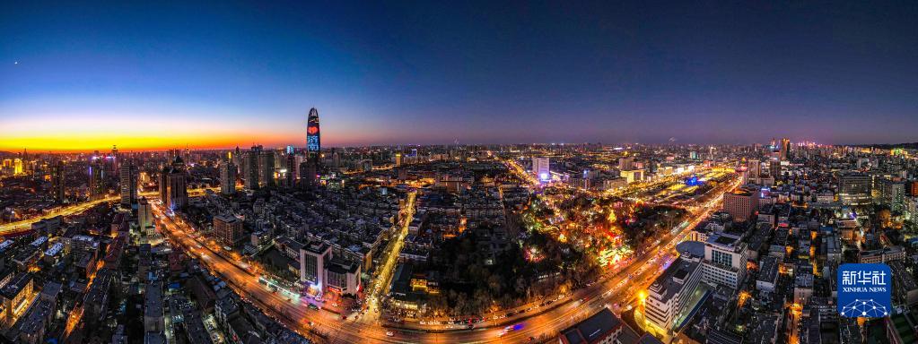 這是1月24日拍攝的濟南夜景(無(wú)人機照片)。