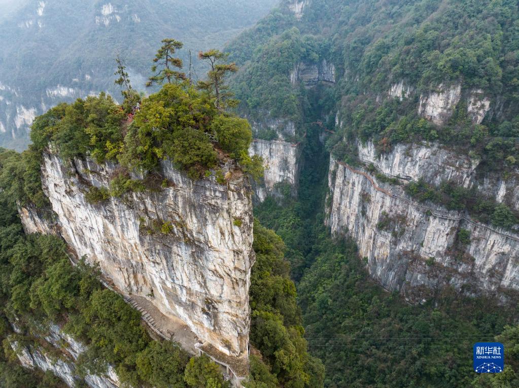 1月25日,在貴州省畢節市大方縣油杉河景區拍攝的仙宇屯景點(diǎn)(無(wú)人機照片)。