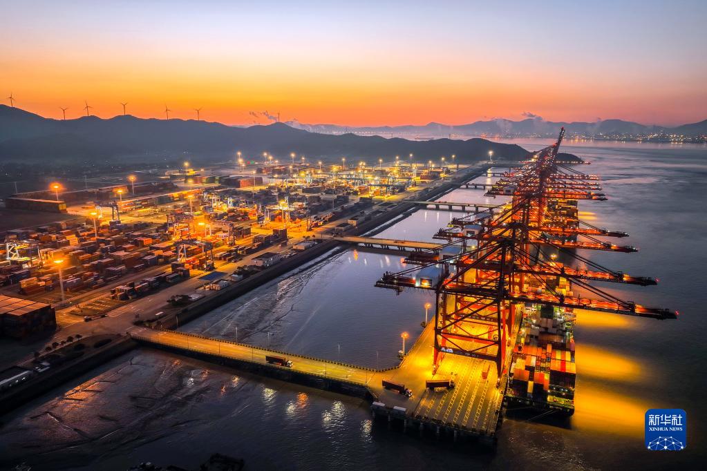 這是1月26日拍攝的寧波舟山港金塘港區大浦口集裝箱碼頭(無(wú)人機照片)。