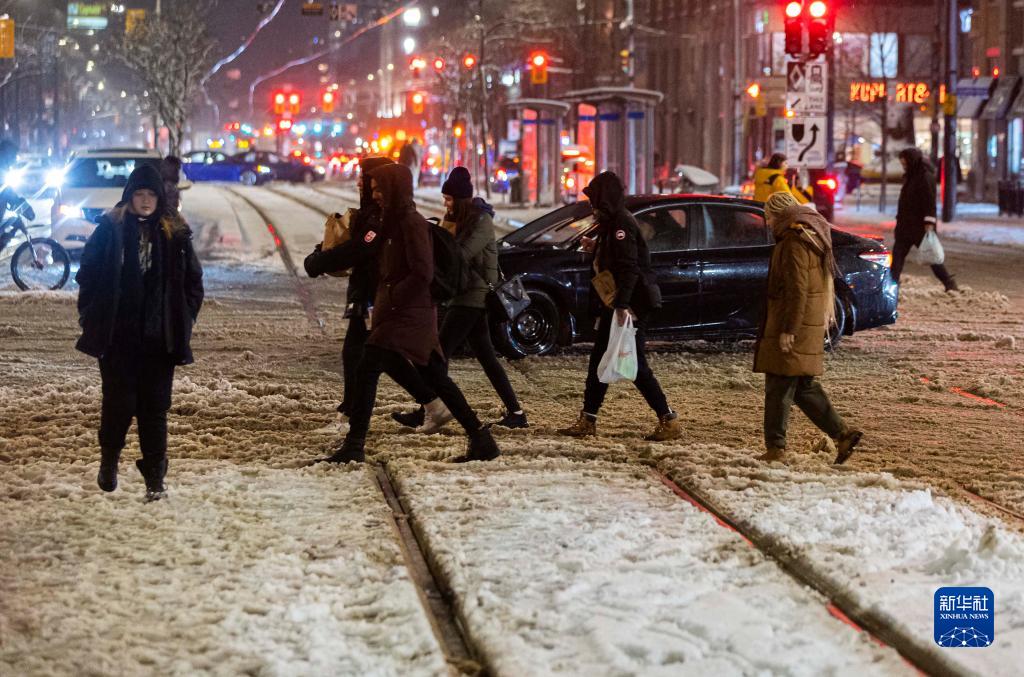 1月25日,在加拿大多倫多,行人走過(guò)積雪的路面。