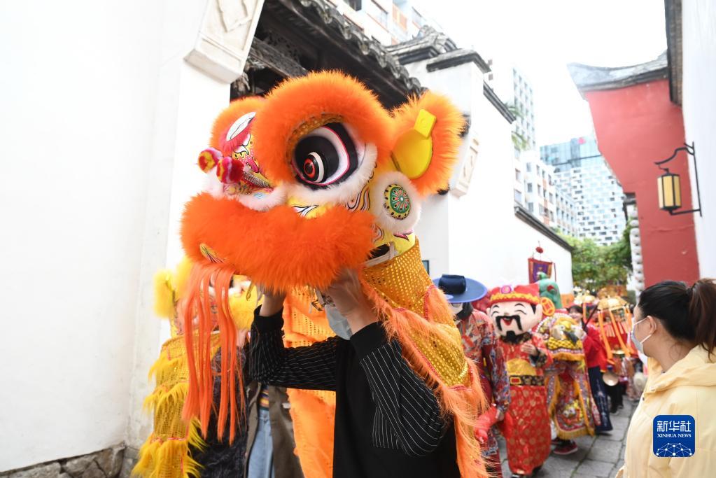 1月26日,在福建省福州市三坊七巷,“正月初五迎財神”民俗巡游隊伍在巡游。