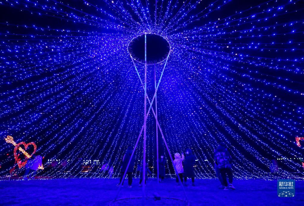 1月25日,游客在河北省石家莊晉州市周家莊鄉第九生產(chǎn)隊欣賞燈光秀。