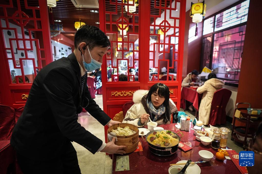 1月26日,食客在沈陽(yáng)老邊餃子館品嘗餃子。