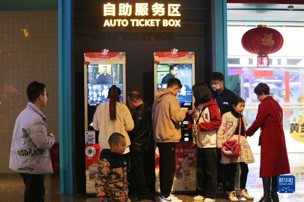 1月26日,人們在甘肅省定西市萬(wàn)達廣場(chǎng)影城內購票。