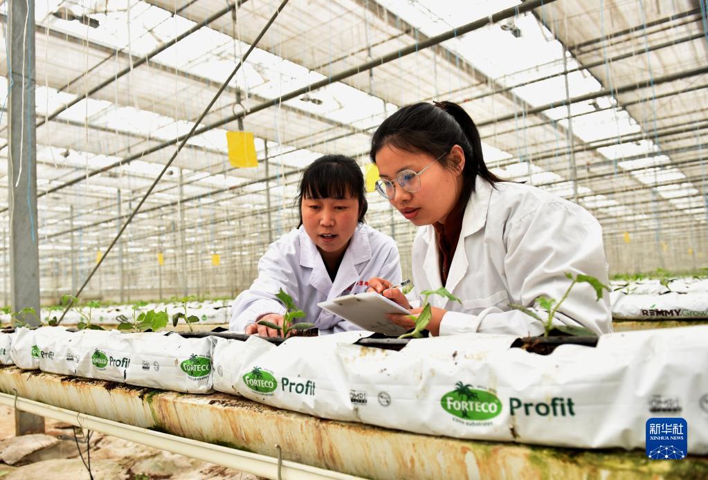 1月26日,武瑞娜(右)和同事一起查看蔬菜秧苗長(cháng)勢。