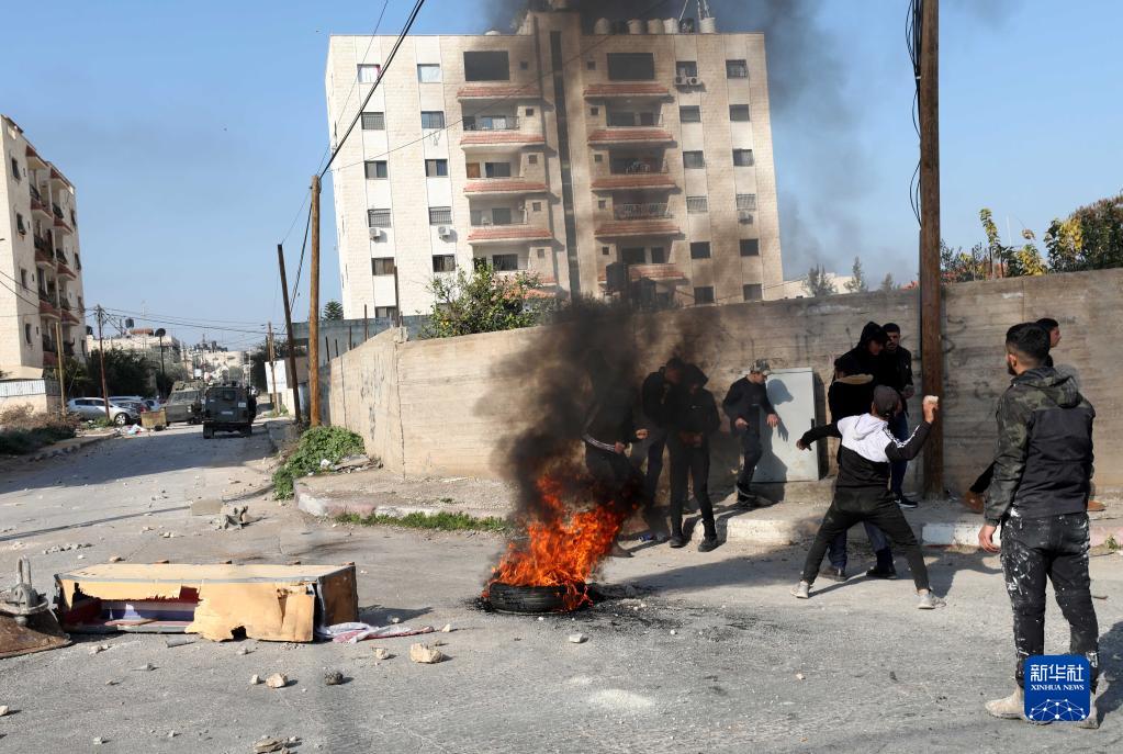 1月26日,在約旦河西岸北部城市杰寧,巴勒斯坦抗議者與以色列軍隊發(fā)生沖突。