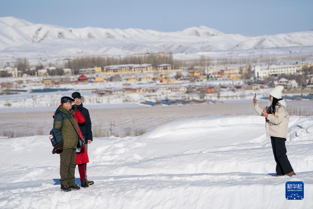 游客在烏魯木齊市南山一處雪地上拍照留影(1月25日攝)。