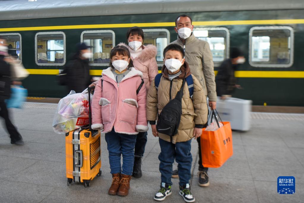 嫁到甘肅省岷縣的新疆呼圖壁縣人汪元芳(后左一)一家在新疆烏魯木齊站準備乘坐火車(chē)前往甘肅。時(shí)隔兩年,汪元芳帶著(zhù)全家人回到新疆呼圖壁縣,在娘家度過(guò)2023年的春節(1月26日攝)。