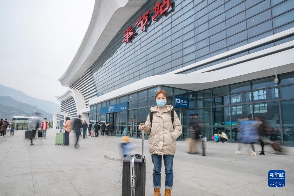 重慶市巫溪縣花臺鄉花臺村人劉明興在奉節站候車(chē),準備去往重慶主城上班(1月26日攝)。劉明興在重慶主城已工作了8年,因為各種原因已經(jīng)兩年沒(méi)能回老家過(guò)春節,今年專(zhuān)門(mén)回家陪家人一起過(guò)節。