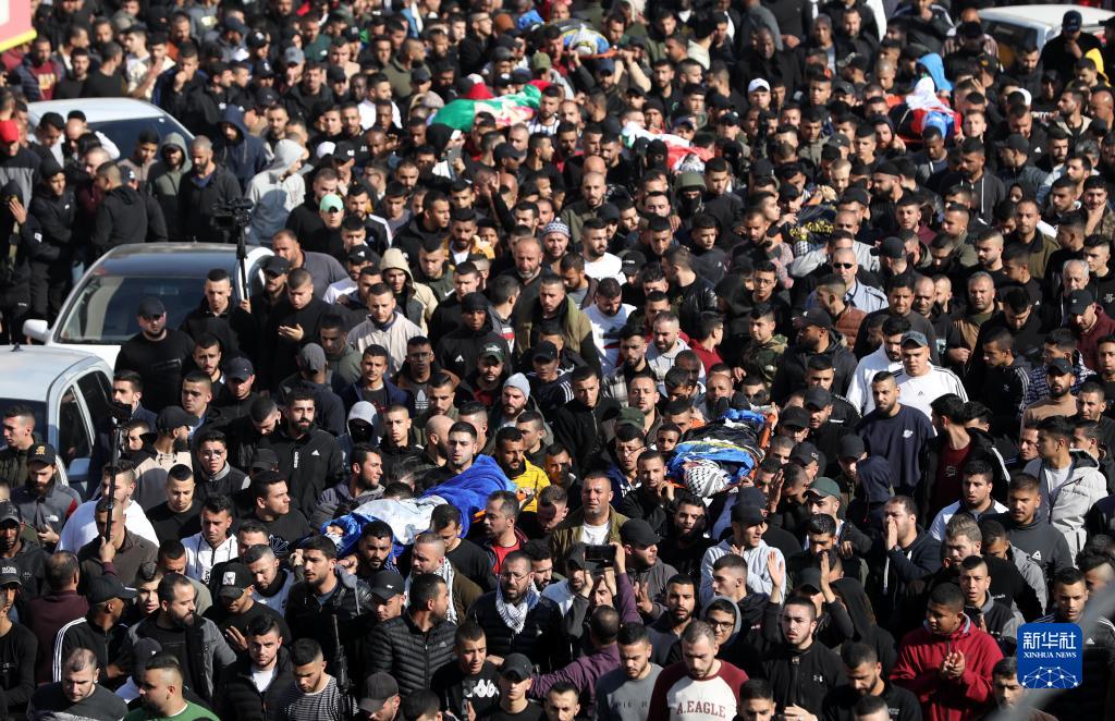 1月26日,人們在約旦河西岸城市杰寧參加被以色列軍隊打死的巴勒斯坦人的葬禮。