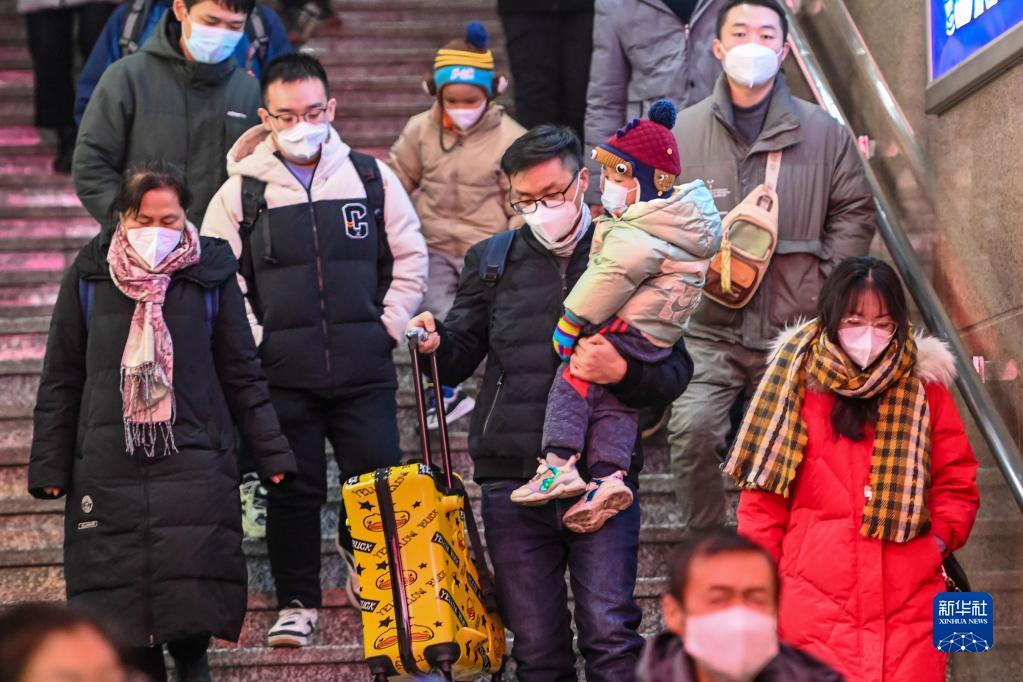 1月27日,旅客在新疆烏魯木齊站準備出站。
