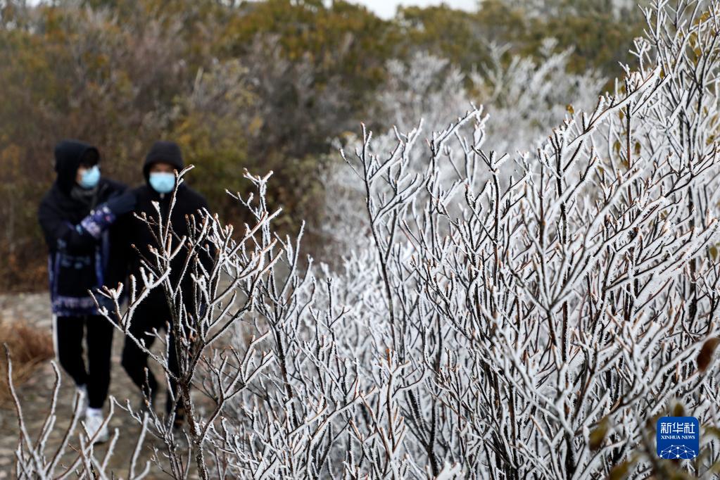 當日,湖南省資興市回龍山景區現霧凇現象,山中樹(shù)木銀裝素裹,吸引游人紛至沓來(lái)。