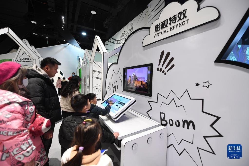 1月27日,小朋友在河南省科技館新館“創(chuàng )享空間”展廳體驗影視特效項目。