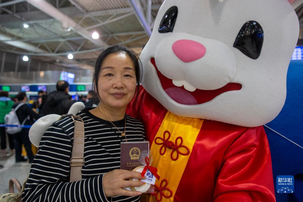 中國農歷兔年春節期間,希臘雅典國際機場(chǎng)推出兔子吉祥物,為乘客送上吉祥與歡樂(lè )。
