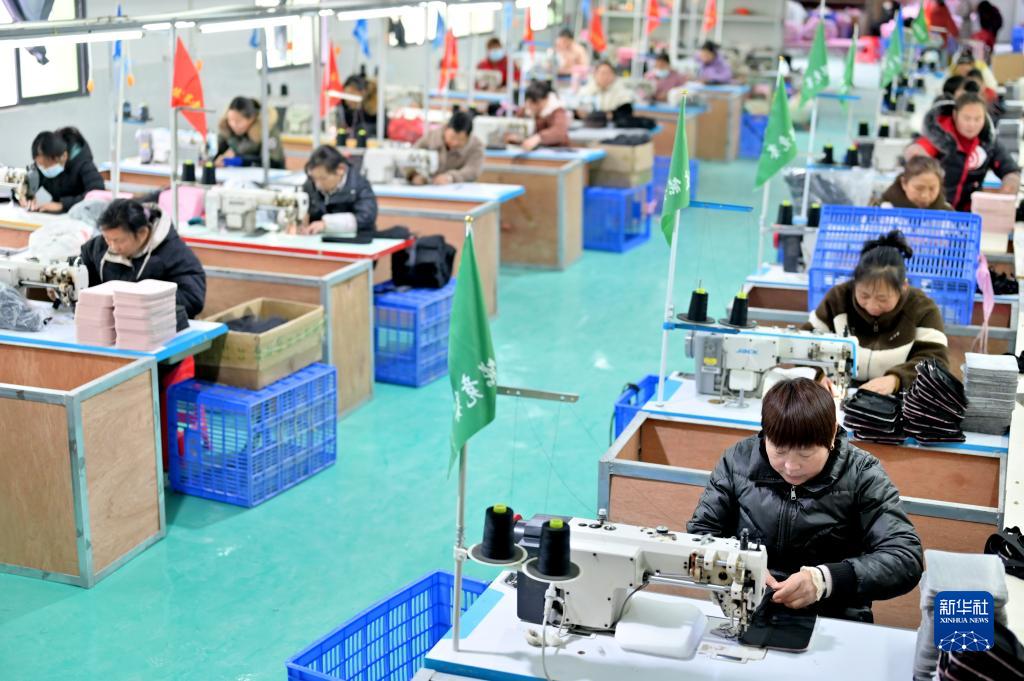 1月27日,在湖南省婁底市雙峰縣走馬街鎮一家箱包企業(yè),工人在車(chē)間內忙碌。