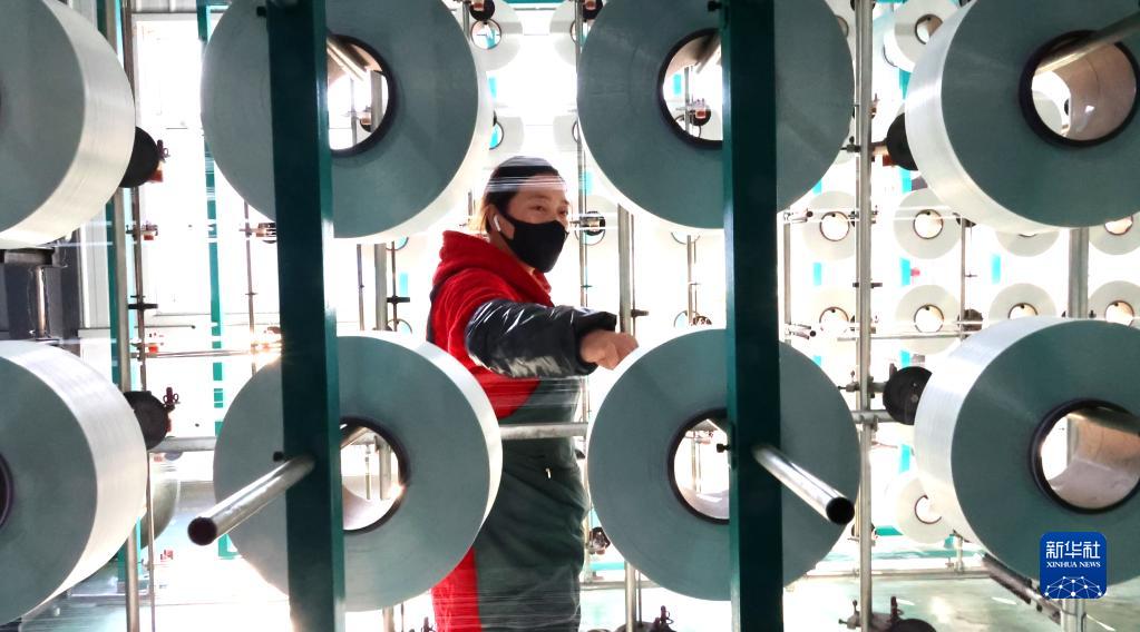 1月27日,在江蘇連云港高新區海州工業(yè)園,工人在毛毯生產(chǎn)線(xiàn)上忙碌。