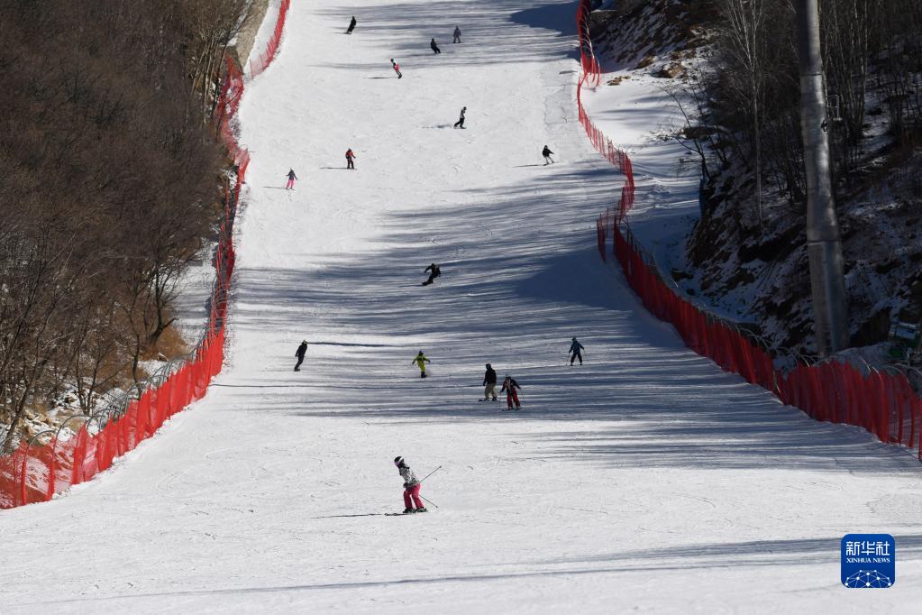 1月27日,滑雪愛(ài)好者在河北省灤平縣一處滑雪場(chǎng)滑雪。