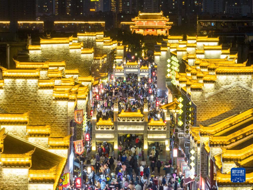 1月27日,游客在湖北襄陽(yáng)古城北街游覽。