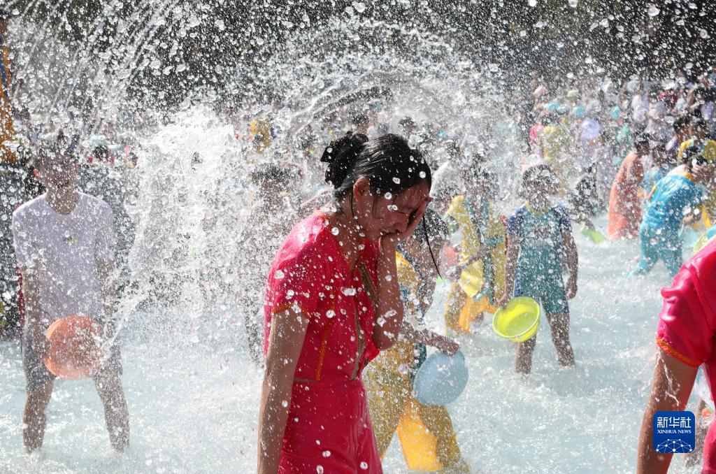 1月25日,游客在西雙版納傣族園景區參加“天天潑水節”活動(dòng)。