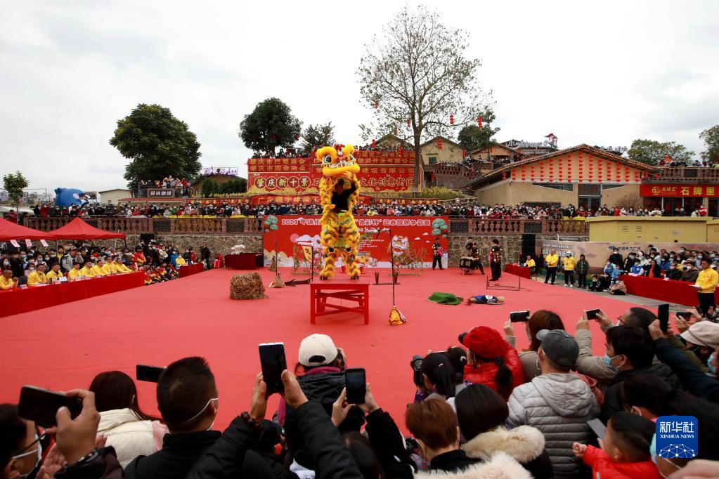 當日,2023年肇慶市端州區迎春醒獅爭霸賽在肇慶市石牌里文創(chuàng )街區廣場(chǎng)鳴鑼開(kāi)賽,共有10支傳統南獅隊伍、5支高樁醒獅隊伍參賽展“絕活”,精彩的比賽讓現場(chǎng)觀(guān)眾大飽眼福。新華社發(fā)(劉春林攝)