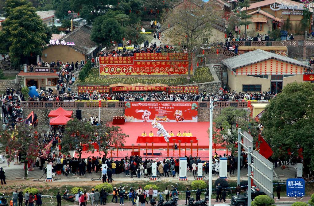 當日,2023年肇慶市端州區迎春醒獅爭霸賽在肇慶市石牌里文創(chuàng )街區廣場(chǎng)鳴鑼開(kāi)賽,共有10支傳統南獅隊伍、5支高樁醒獅隊伍參賽展“絕活”,精彩的比賽讓現場(chǎng)觀(guān)眾大飽眼福。新華社發(fā)(劉春林攝)