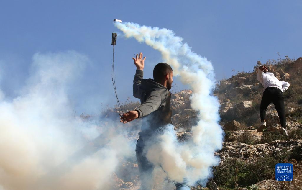 1月27日,在約旦河西岸城市納布盧斯東部村莊拜特代堅,巴勒斯坦抗議者與以色列士兵發(fā)生沖突。