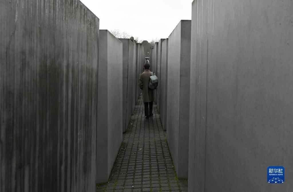 1月27日,一名男子在德國柏林的歐洲被害猶太人紀念碑參觀(guān)。