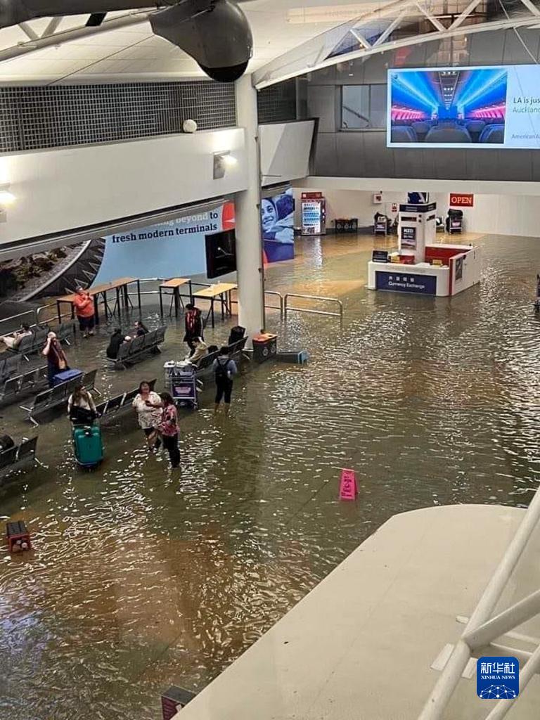 這張來(lái)自社交媒體的照片顯示,1月27日,新西蘭奧克蘭國際機場(chǎng)國際出發(fā)航站樓遭洪水侵襲。