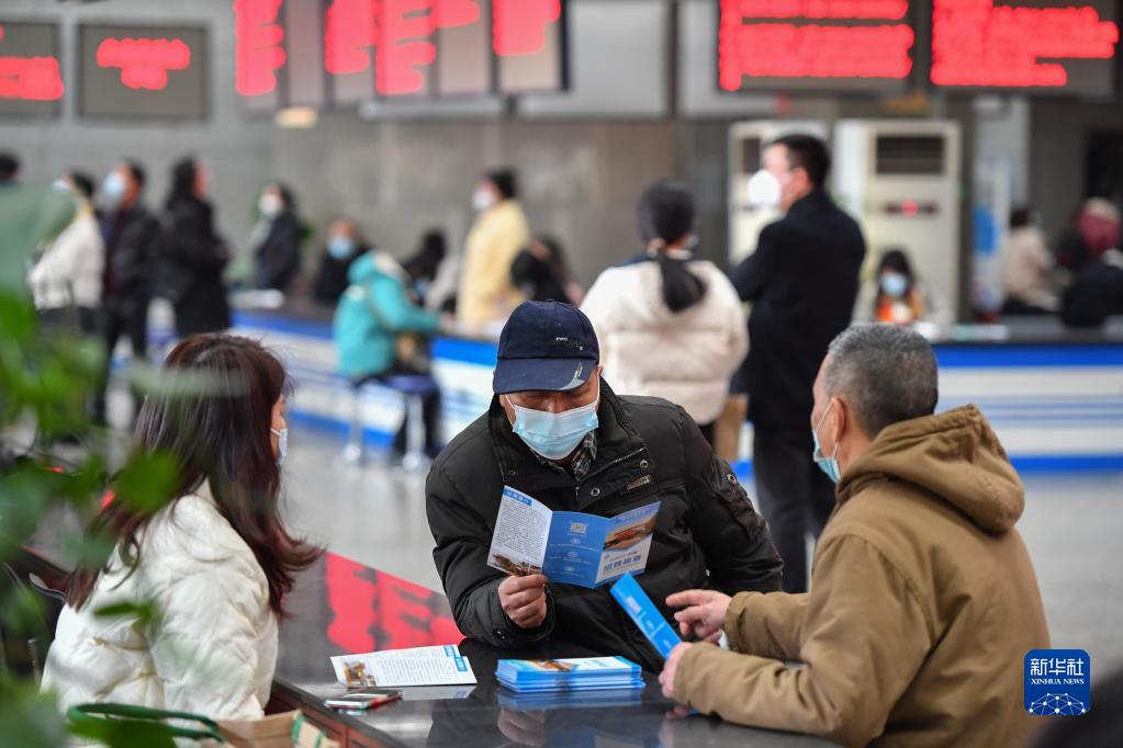 1月28日,在長(cháng)沙市人力資源市場(chǎng),求職者(中)了解用人單位的招聘簡(jiǎn)章。