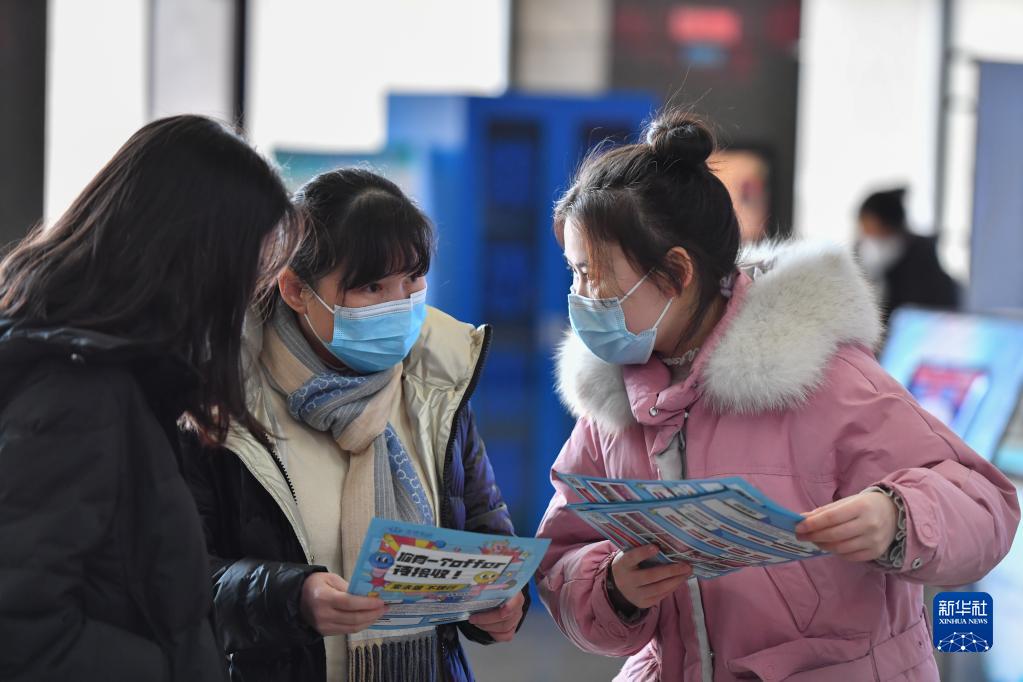 1月28日,在長(cháng)沙市人力資源市場(chǎng),用人單位工作人員(右)向求職者介紹崗位信息。