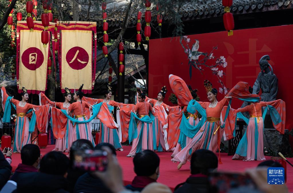 1月28日,在四川成都舉行的“人日”游草堂、祭拜詩(shī)圣杜甫活動(dòng)現場(chǎng),演員在表演舞蹈。