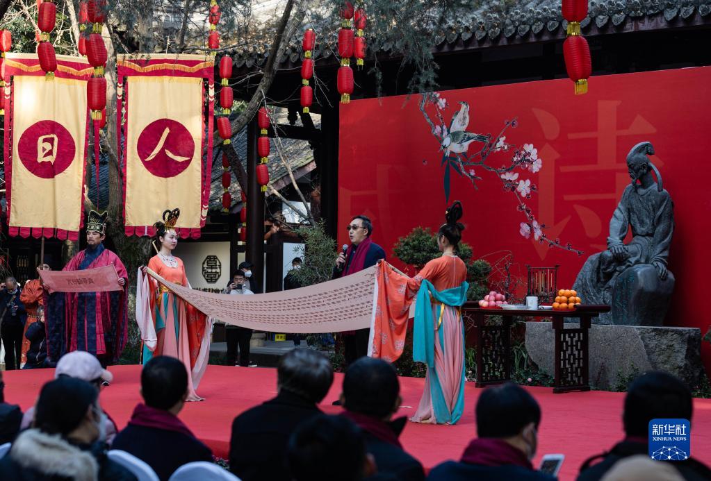 當日是農歷正月初七,又稱(chēng)“人日”,一年一度的“人日”游草堂、祭拜詩(shī)圣杜甫活動(dòng)在成都杜甫草堂舉行。社會(huì )各界群眾齊聚草堂大雅堂前,舉行祭拜儀式和詩(shī)會(huì ),祭拜先賢,緬懷詩(shī)圣,弘揚中華優(yōu)秀傳統文化。