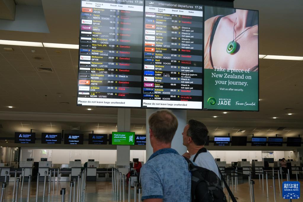 1月28日,旅客在新西蘭奧克蘭國際機場(chǎng)查看信息提示牌。